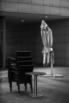 2020-ban ugyan más okból kényszerültünk és kényszerülünk karanténba. Birtalan Zsolt még a tavaszi karantén idején járta fényképezőgépével a budapesti utcákat, parkokat, s örökítette meg a kinti, ember nélküli csendet, a vidámabb napokat is megélt napernyőt, egy hajléktalan elhagyott fekhelyét, a magányosan nézelődő cicát, vagy a város felett gyülekező felhőket, amelyek borúsan figyelték, hogy merre tart alattuk a világ. A művész azonban korántsem csak a negatív reflexiókat látta meg maga körül: ott van képein a réten boldogan szaladgáló kisgyerek, a vízen csaholva átrohanó kutyapár, a még téli álmot alvó társai közt virágba borult fa, valamint egy épület tetején büszkén „napozó” női szobor is.