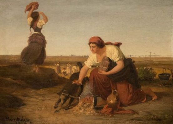 A másik alkotás A bogrács, amely témája egy komikus esemény: a pusztán vacsorát főző menyecske rémülten látja, hogy egy arra szaladó kutya feldöntötte a tűzön rotyogó bográcsot. Kiváló zsánertéma, amelyet a fiatal festő zseniálisan oldott meg: miközben folytatja a klasszicizáló biedermeier hagyományt, túl is lép rajta. Kis mérete ellenére a kép egyszerre komikus és komoly, monumentális és dinamikus. Az alkotás monumentalitását és dinamizmusát a klasszikus formák és arányok alkalmazása, a két menyecske jól eltalált mozdulata és a lobogó vörös drapériák vibrálása biztosítja. Érdemes külön figyelmet fordítani a nyújtózkodva integető alak könnyed, ívelt mozdulatára, amely talán nem véletlenül idézi fel vizuális emlékeink tárházában az 1863-ban megtalált szamothrakéi Niké szárnyaló alakját. (Ormós Zsigmondtól Munkácsy naprakészen értesülhetett a jelentős felfedezésről.) Malonyay Dezső (Munkácsy titkára és első monográfusa) közlése alapján Végvári Lajos 1866-ra datálta a képet, mint olyat, amelyet Munkácsy kifejezetten a szembetegségét meggyógyító dr. Hirschler Pálnak festett hálából. A kép bal alsó sarkában azonban az 1864-es évszám olvasható, így a pontos datálás kérdése egyelőre nyitva marad.