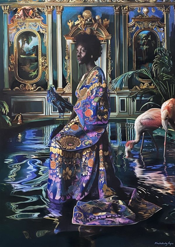 A kiállításon szereplő Venice I. című művészeti alkotása egyszerre lírai elmélkedés és vizuális vészjelzés. A nagyméretű vásznon Velence ikonikus városa nem idealizált képeslapként jelenik meg, hanem egy törékeny, emlékezet és eltűnés között lebegő organizmusként. Törött építészeti formák, oldódó tükröződések és szimbolikus vízi elemek idézik meg a várost, amely nemcsak fizikailag süllyed – a klímaváltozás következményeként –, hanem kulturálisan is veszélyben van. A művészeti alkotás gazdag textúrája és szimbolikája a civilizáció és a természet határvonalait vizsgálja, és gyönyörűsége épp a közelgő eltűnés miatt válik fájóan intenzívvé.
